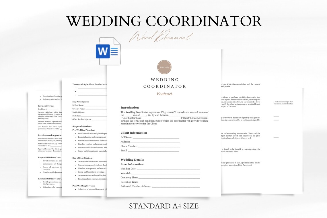 Wedding Day Coordinator Contract Customizable Professional Template A4