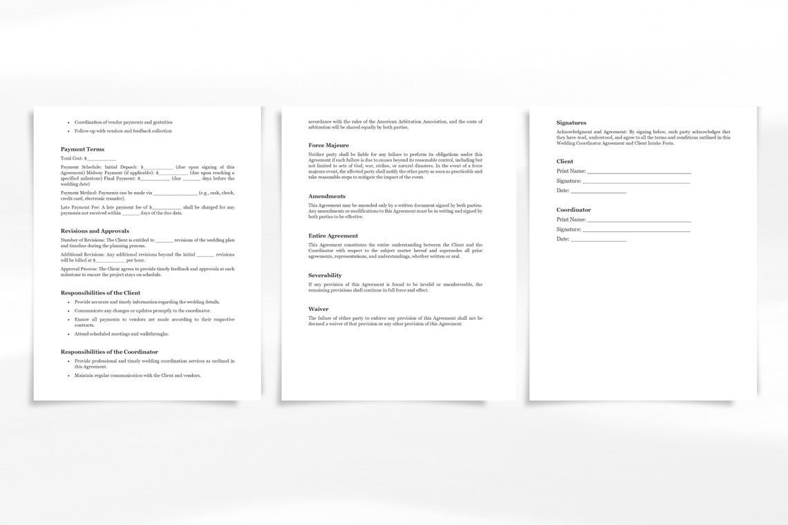Wedding Day Coordinator Contract Agreement Form Editable Event