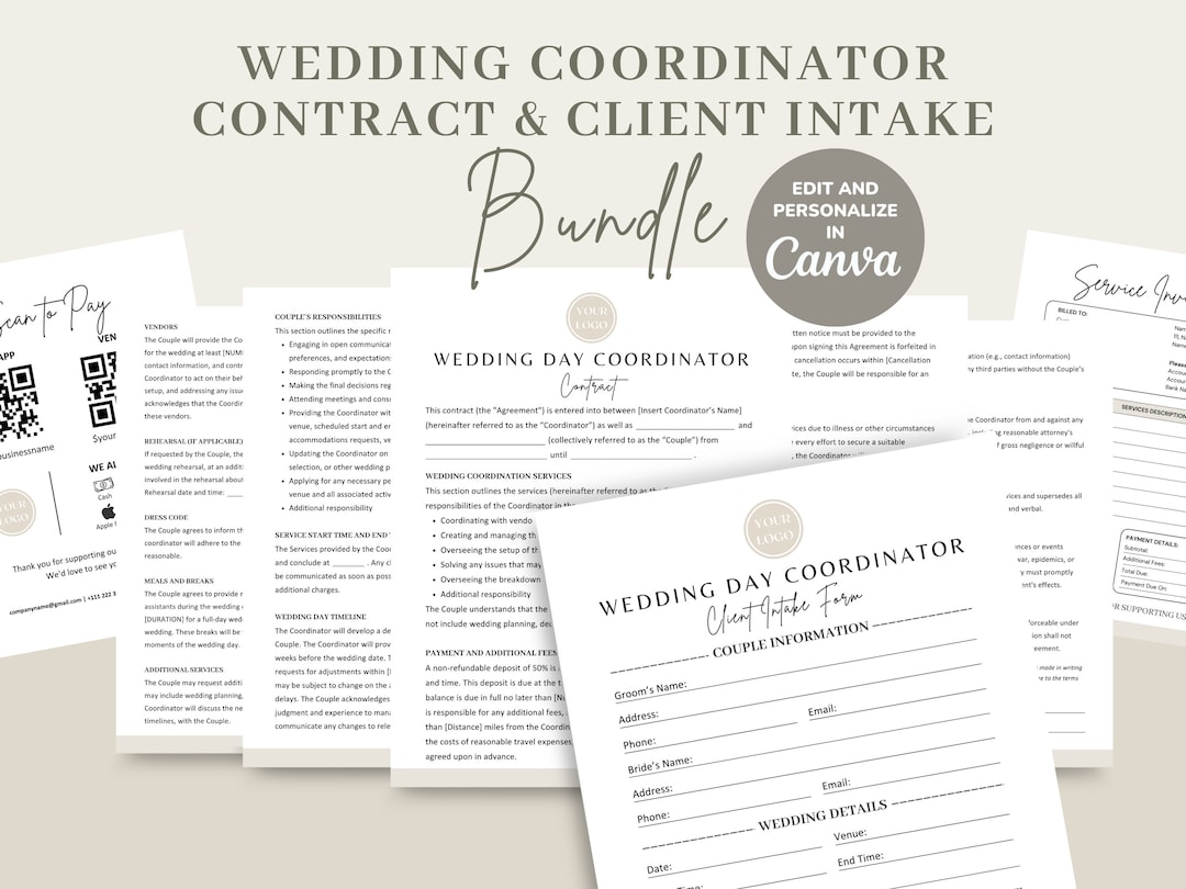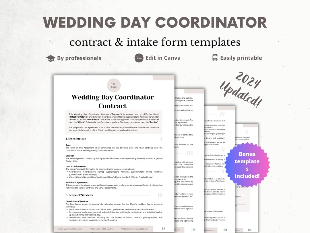 Wedding Coordinator Contract Template Invoice Welcome Letter Etsy
