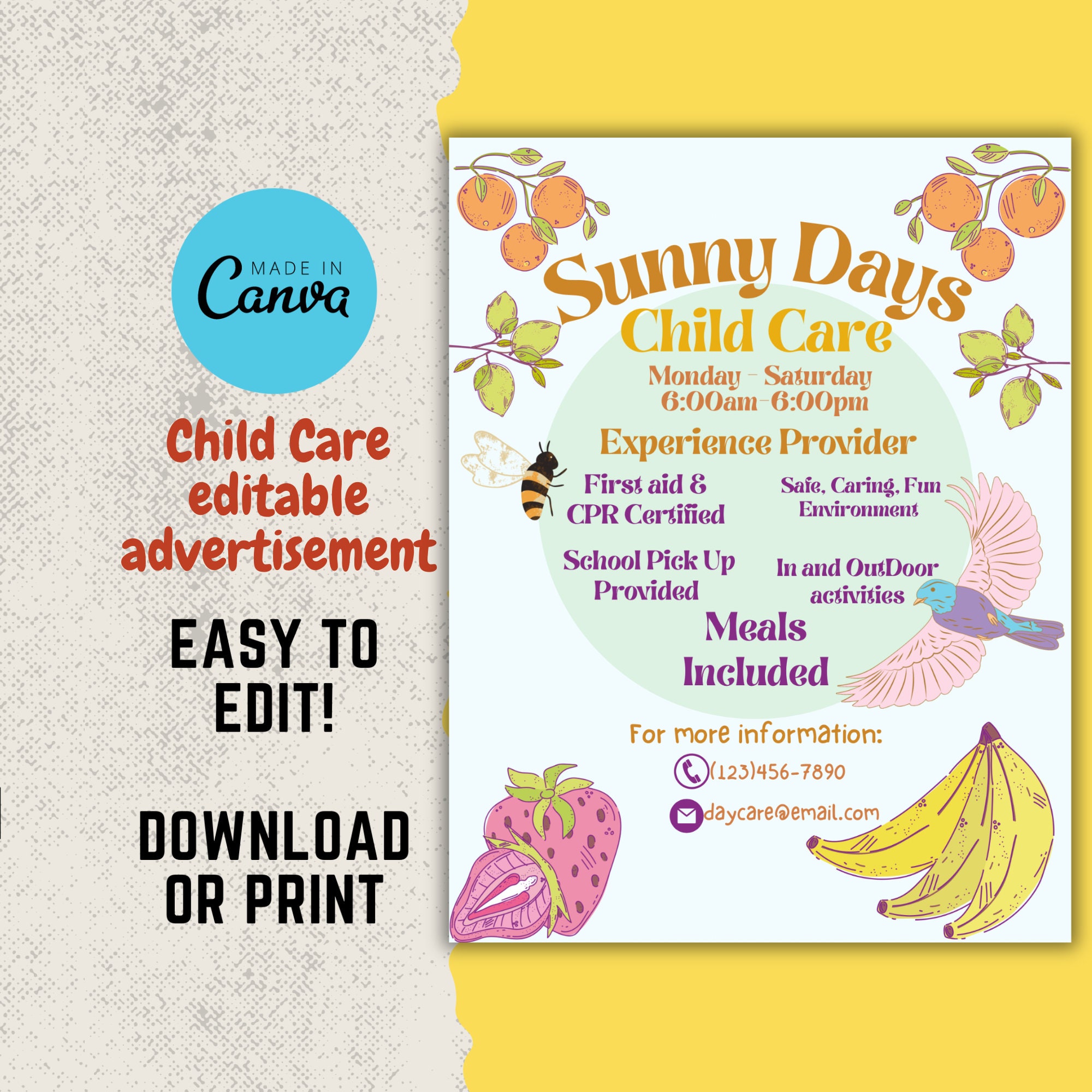 Editable Daycare Marketing Flyer Childcare Advertising Poster Summer