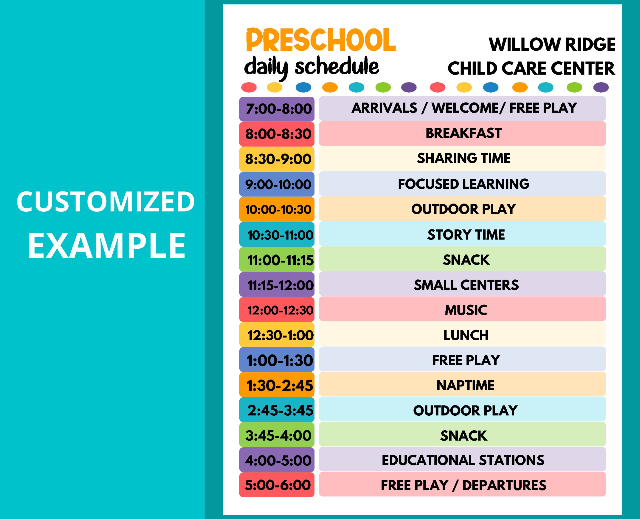 Daily Preschool/daycare Schedule Template EDITABLE Etsy