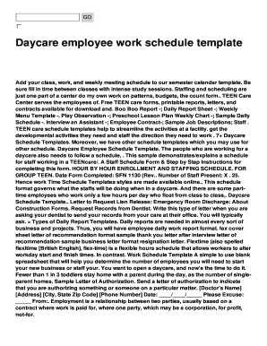 Fillable Online Daycare employee work schedule template Fax Email Print