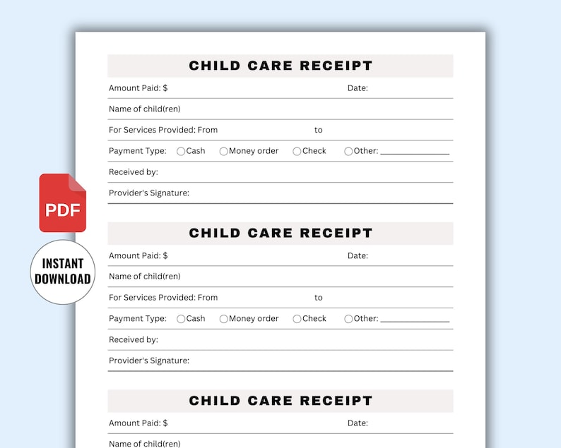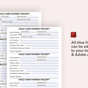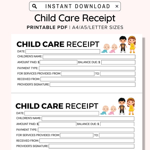 Childcare Receipt Form Daycare Receipt Template Printable/editable