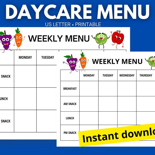 Daycare Menu Template Printable Weekly Menu for Daycare Etsy Australia