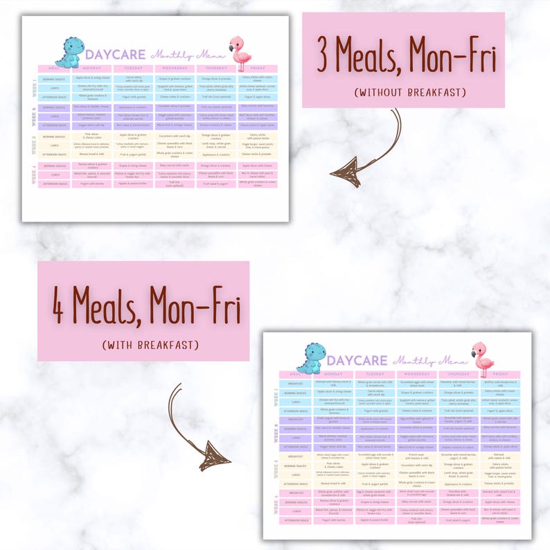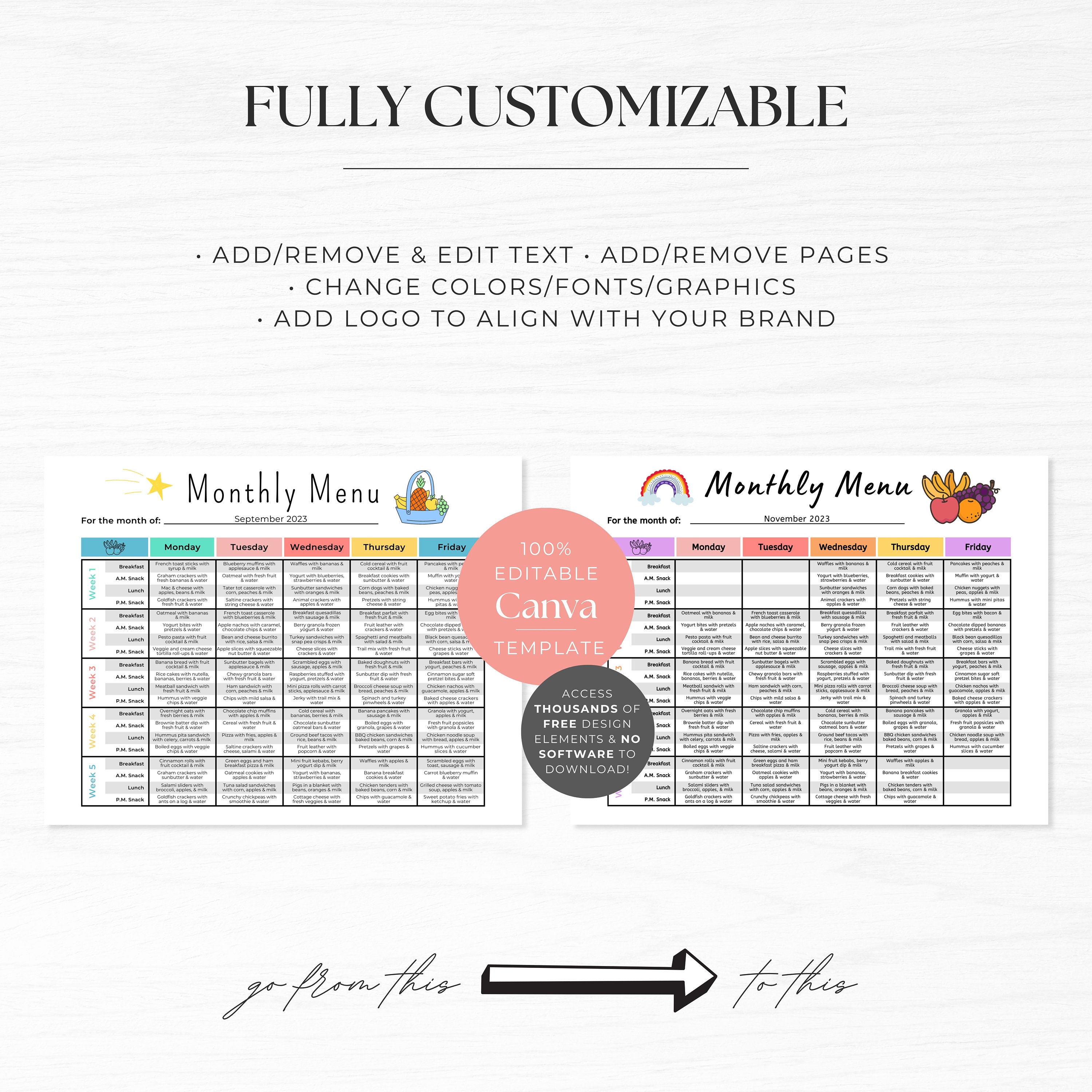 Daycare Monthly Menu Printable Menu for Daycare Editable Etsy