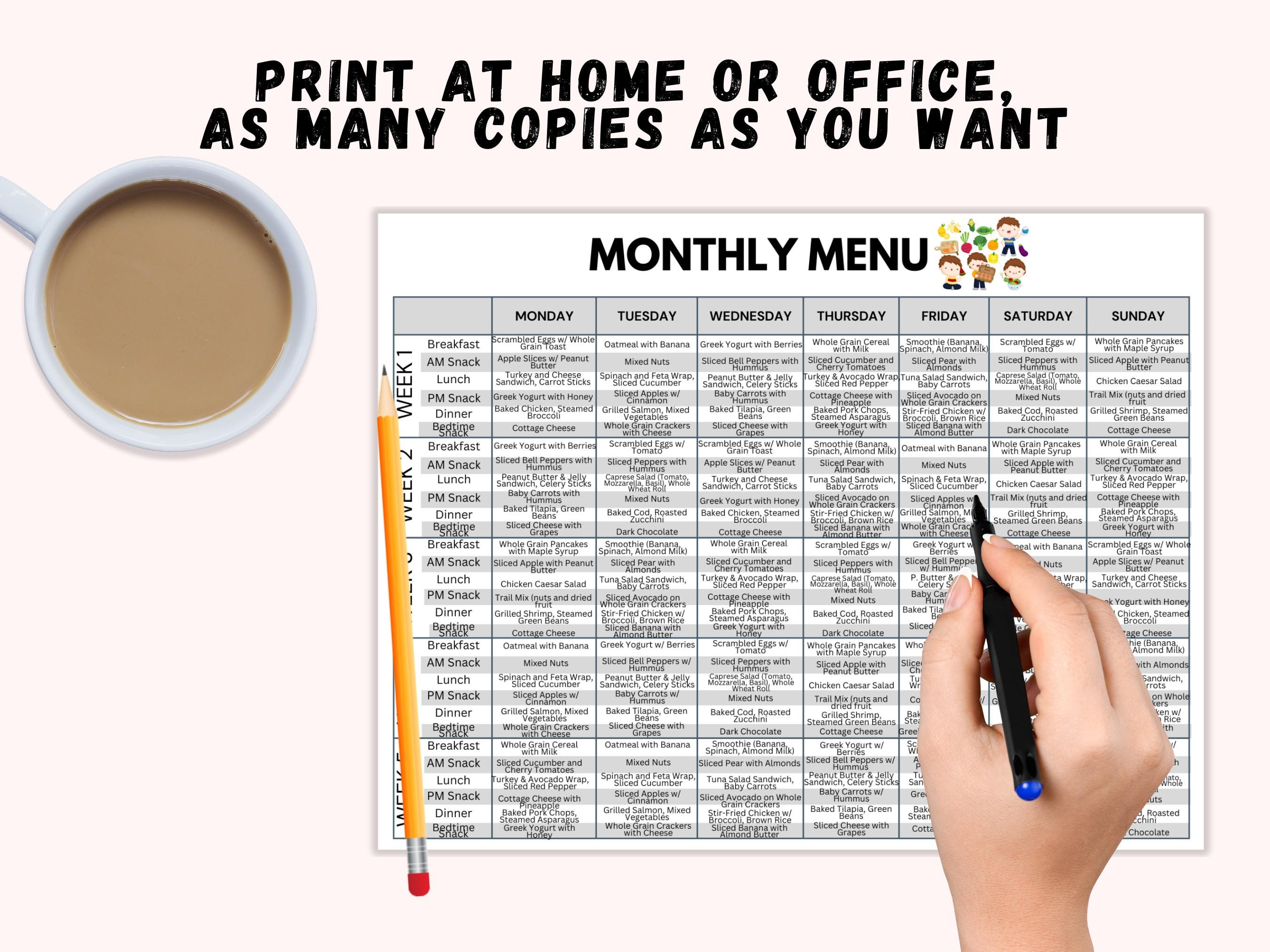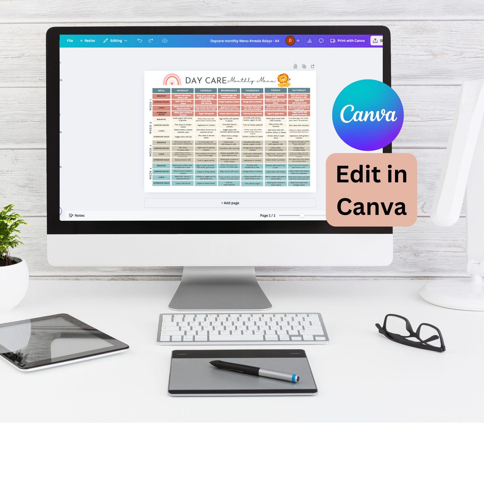 Daycare Monthly Menu Template Editable Meal Planner for Kids Kids