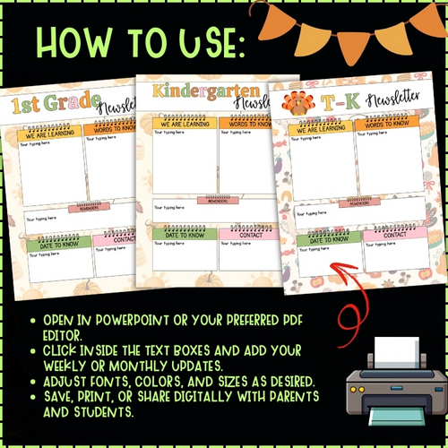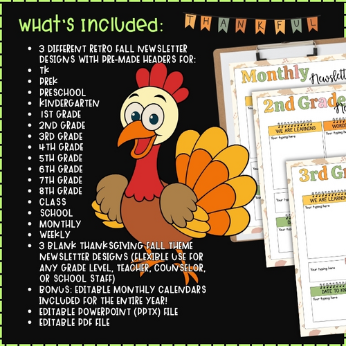 EDITABLE Month Week November Fall Thanksgiving Day Theme Newsletter