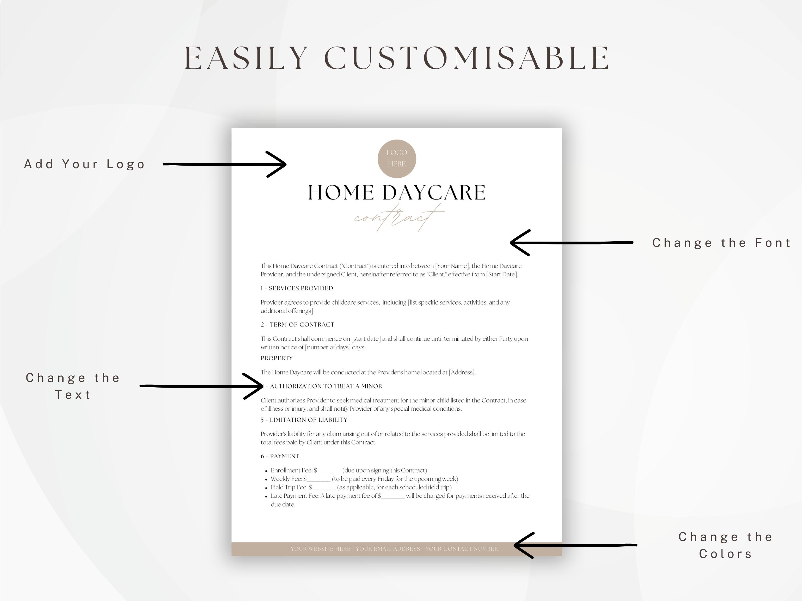 Editable Home Daycare Contract Template Childcare Forms Daycare