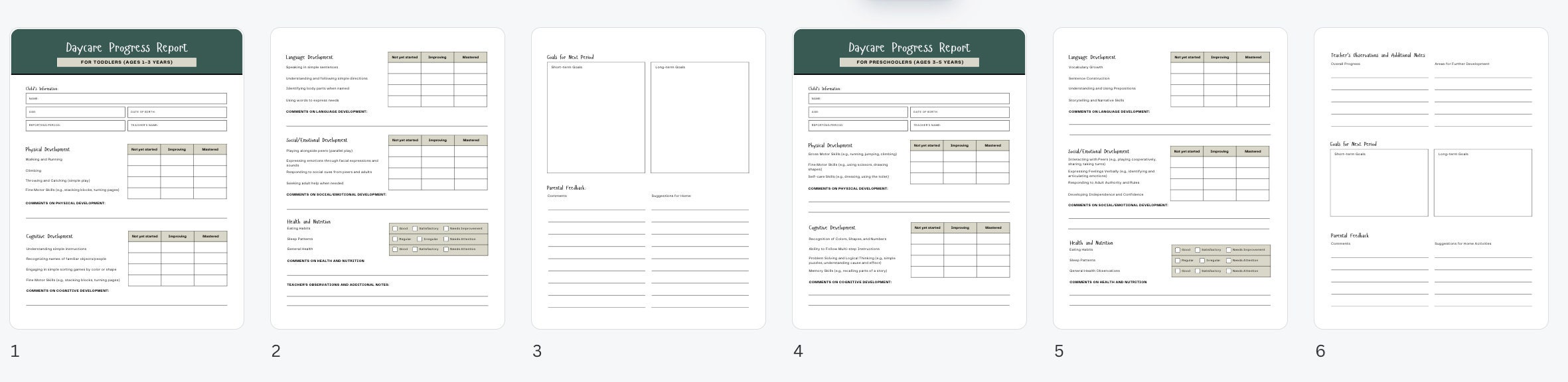 Daycare Progress Report Templates and Printables