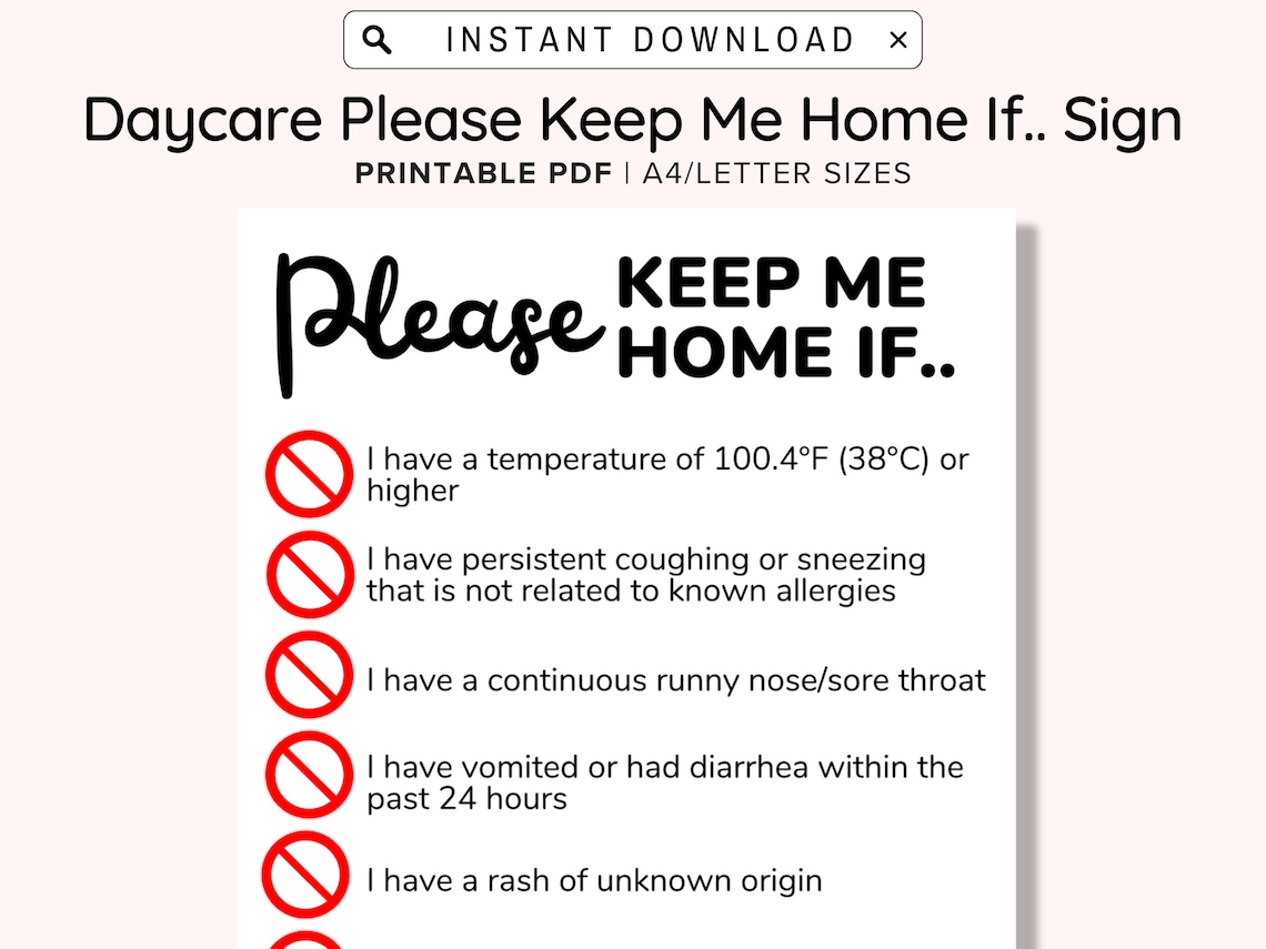 Daycare Sick Policy Handouts and Posters: 25 High Definition Etsy New