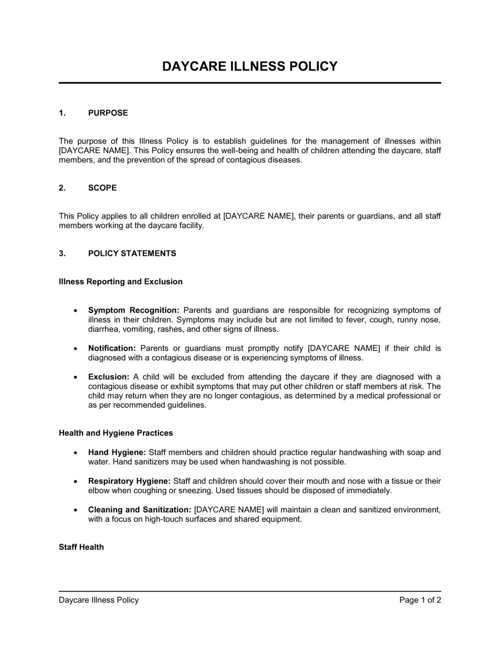 Here are some of the images for Daycare Sick Policy Template that we found in our website database.