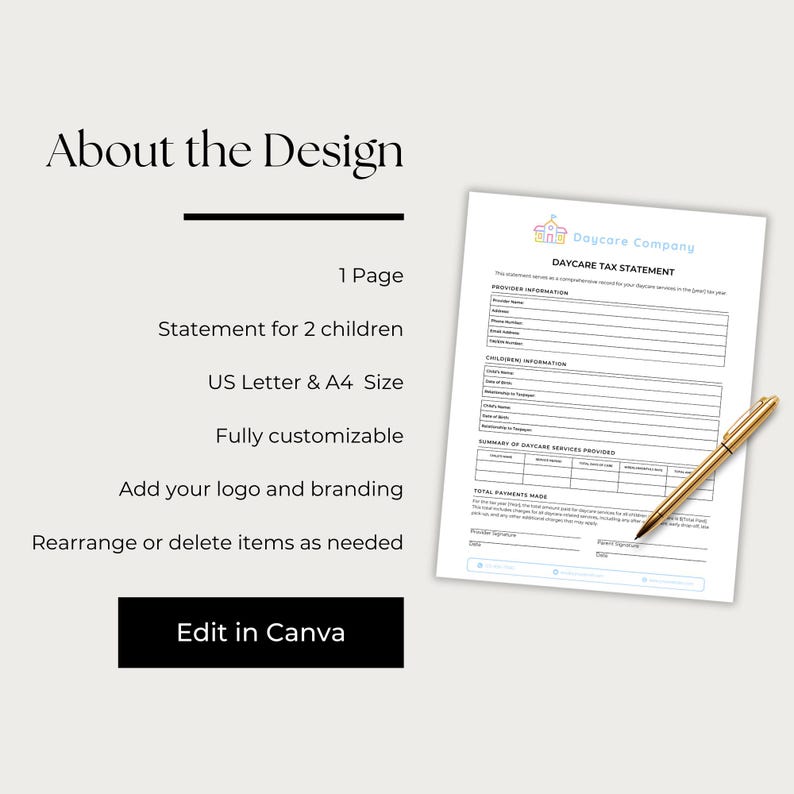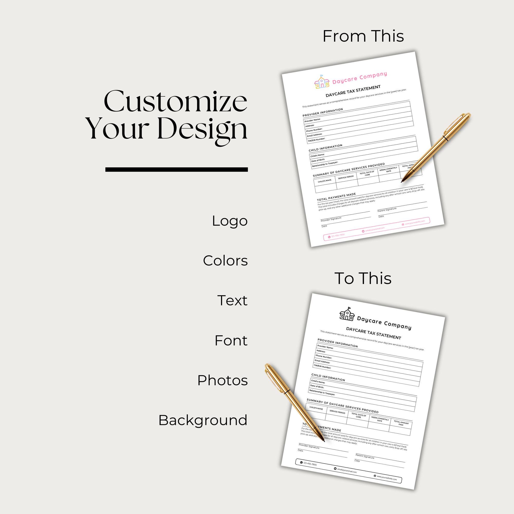 Tax Statement Customize Child Care Business Daycare Parents Tuition