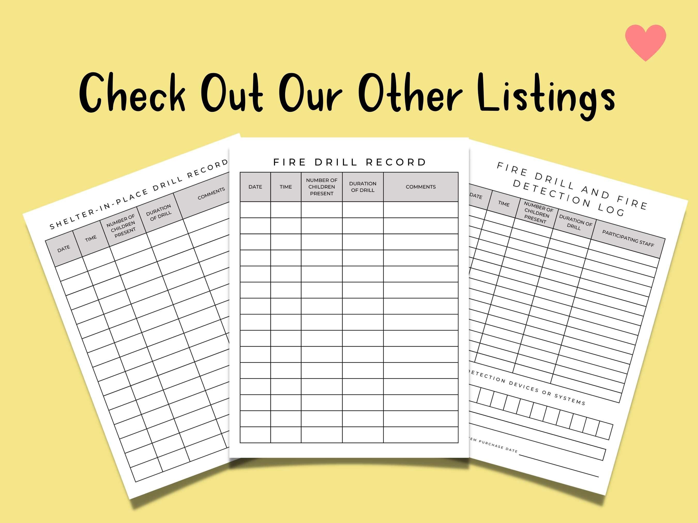 Emergency and Evacuation Record for Daycares (Instant Download) Etsy