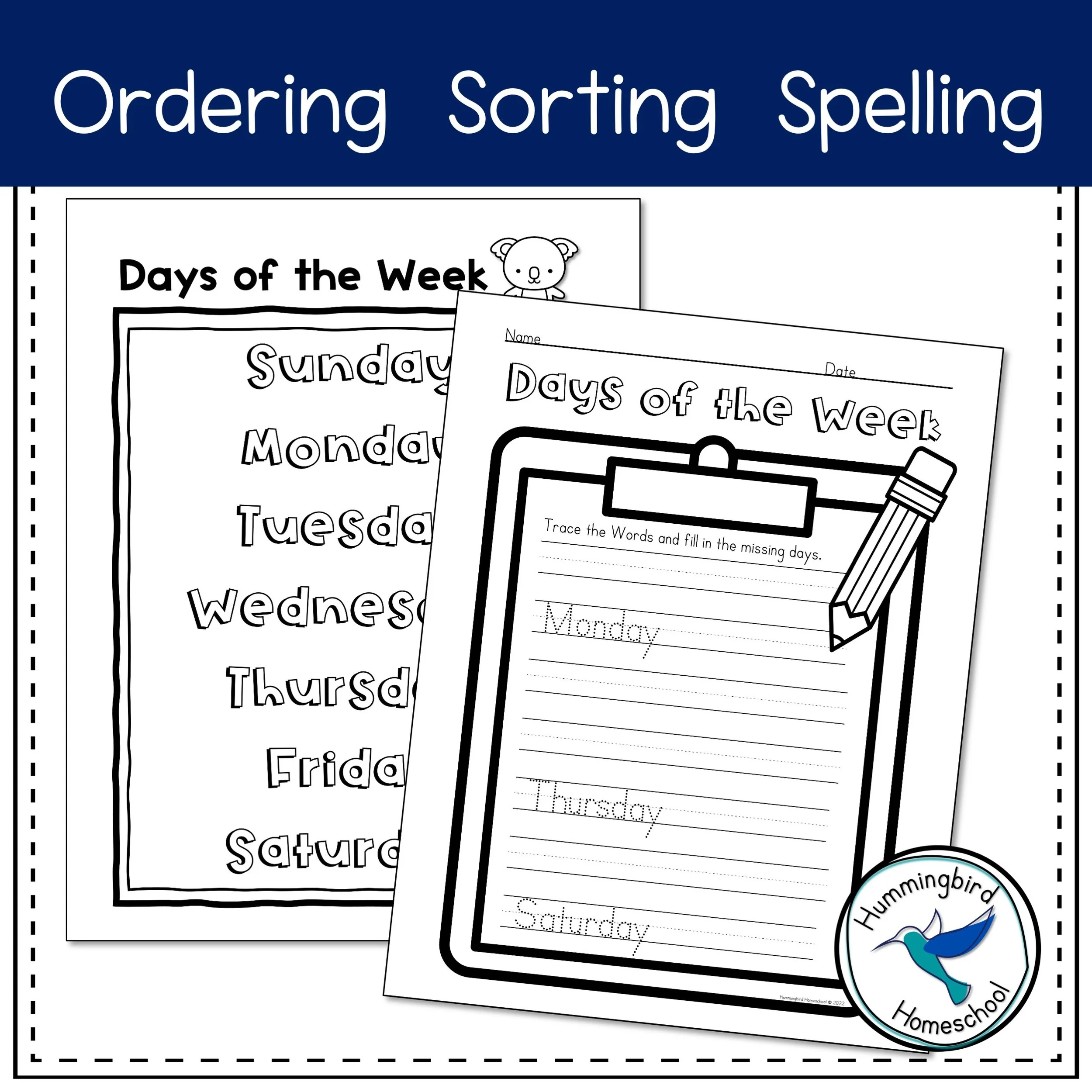 Days of the Week Printables PDF Teaching Resource Hummingbird Homeschool
