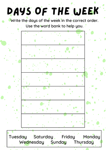 Days of the Week Template K 3 Teacher Resources Ingles para