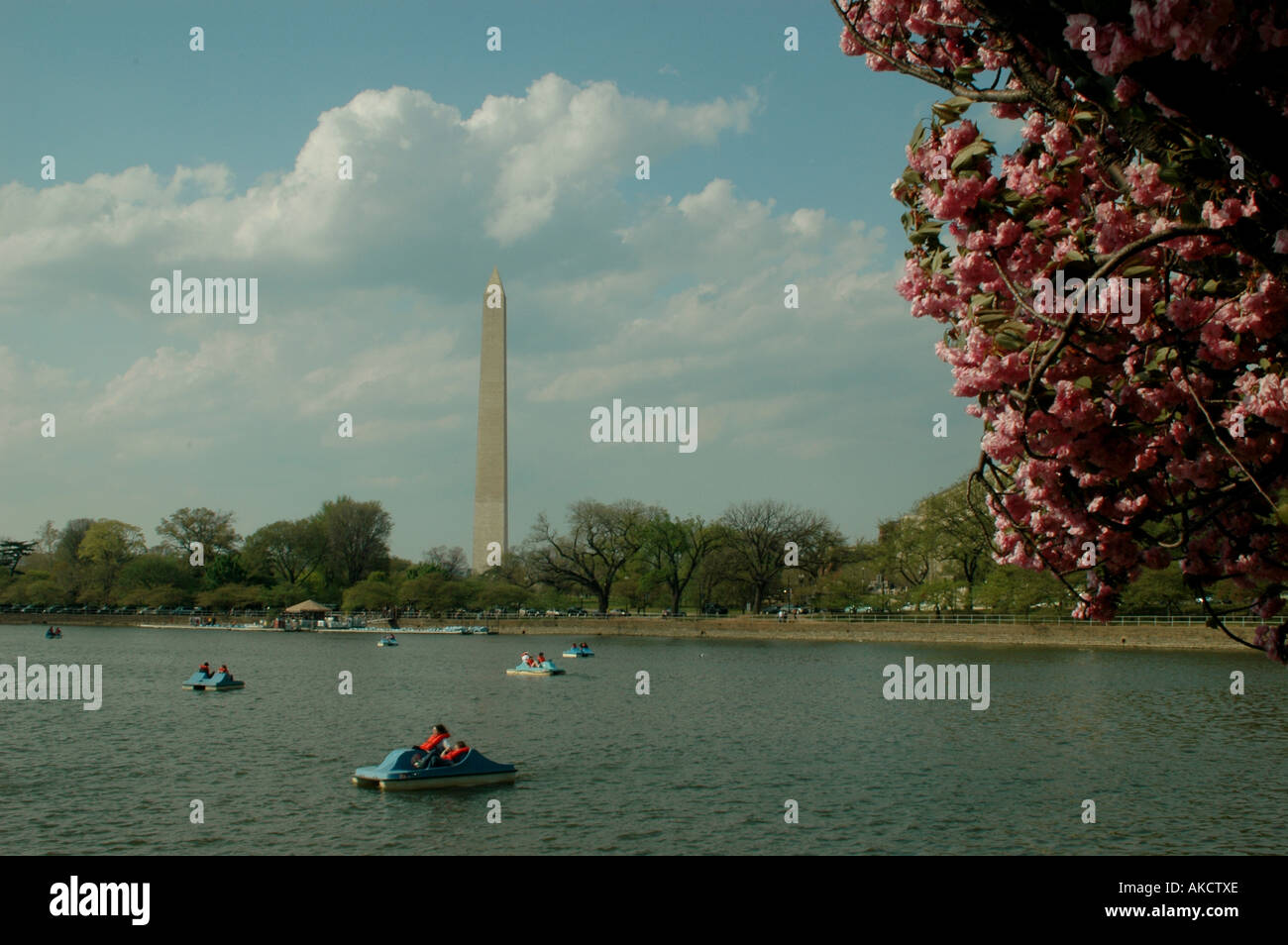 WASHINGTON DC BOATING IN FRONT OF WASHINGTON MONUMENT WITH CHERRY