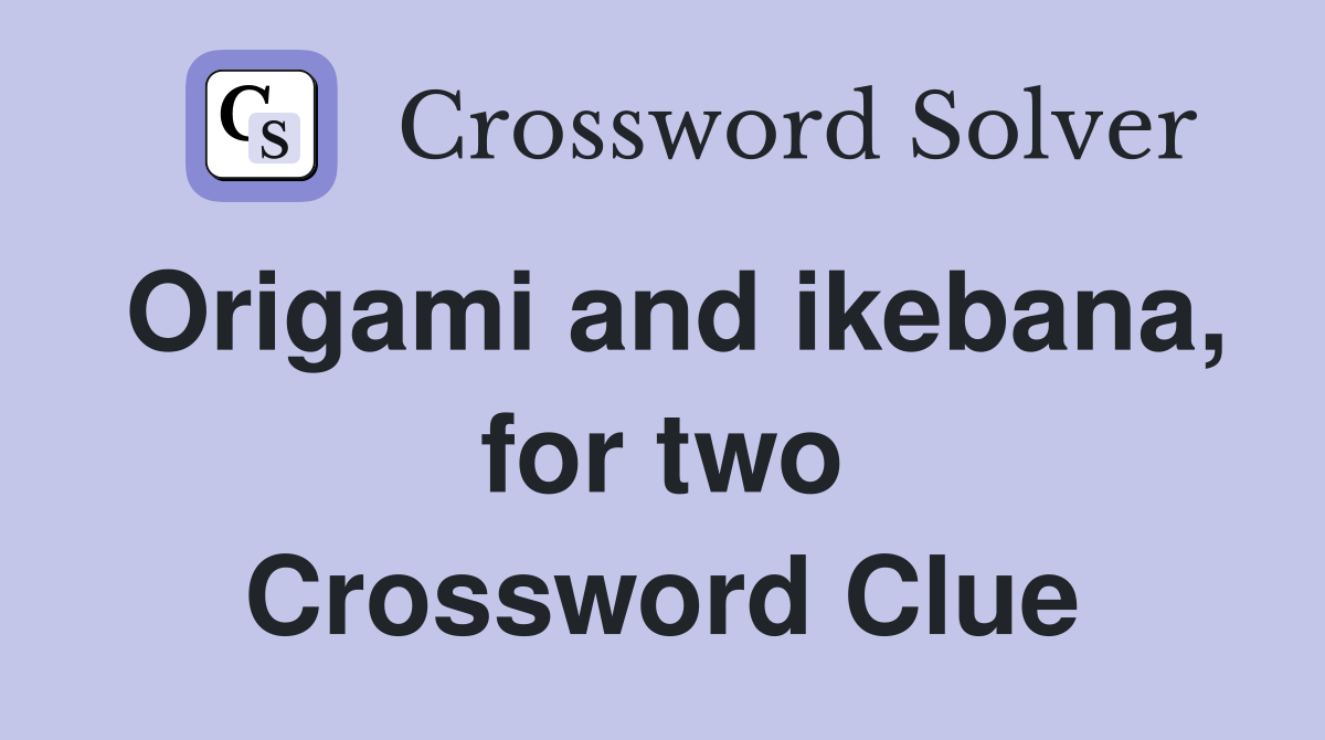 Origami and ikebana for two Crossword Clue Answers Crossword Solver
