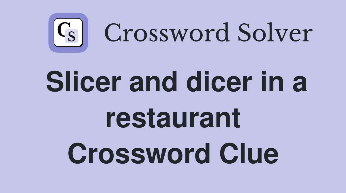 Slicer and dicer in a restaurant Crossword Clue Answers Crossword