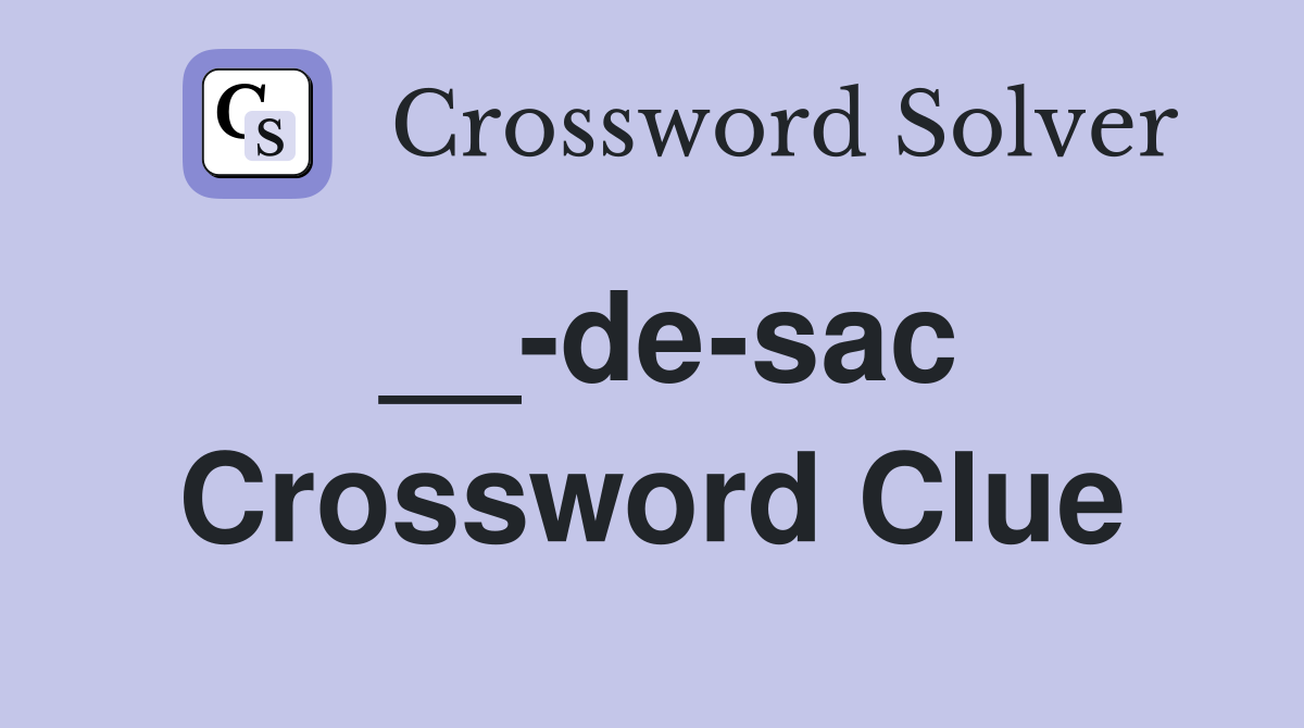 Here are some of the images for De Sac Crossword Clue that we found in our website database.