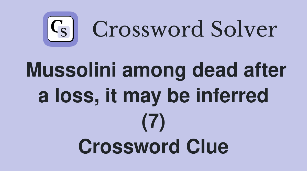 Mussolini among dead after a loss it may be inferred (7) Crossword