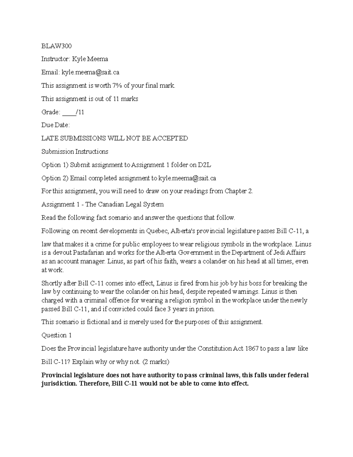 Assignment 1 BLAW Instructor: Kyle Meema Email: kyle sait This
