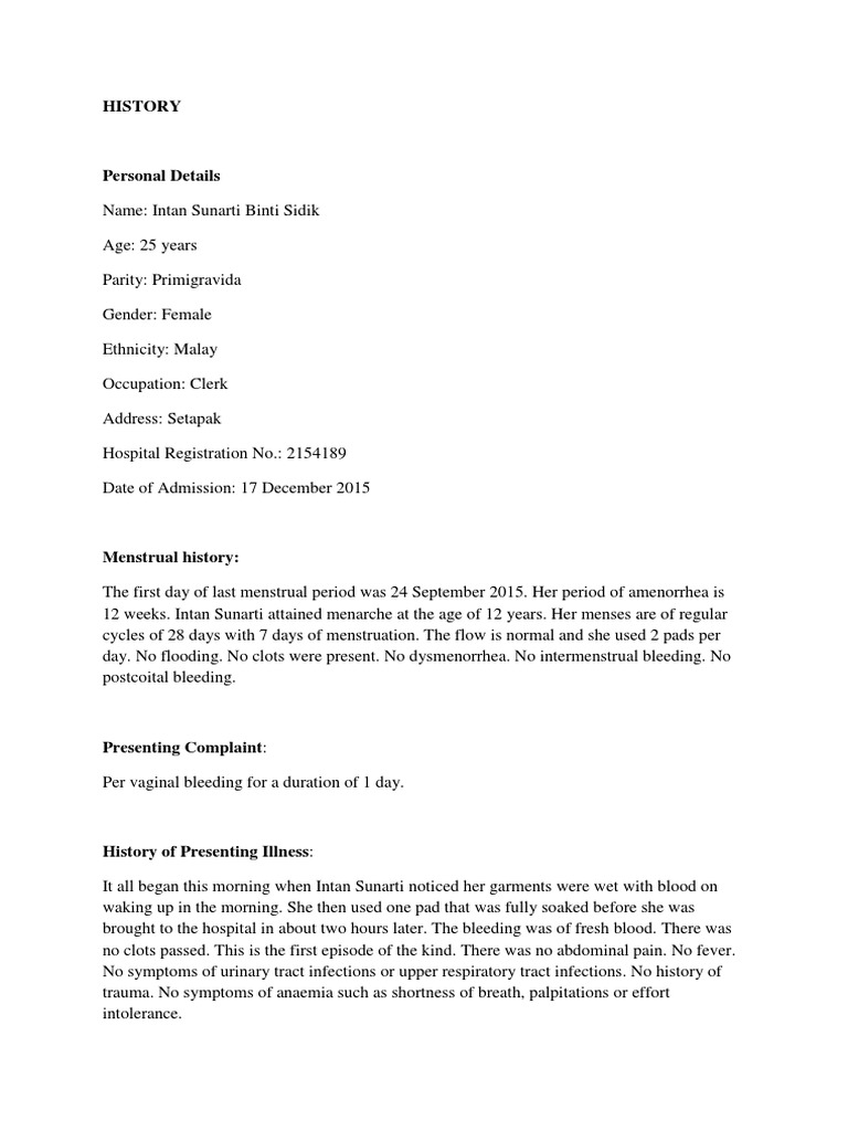 Gynaecology Threatened Miscarriage Case Writeup PDF Menstruation