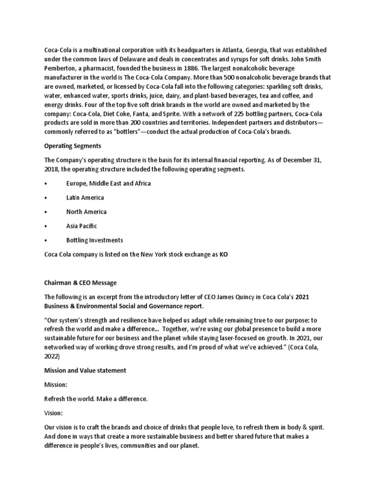 Cocacola CSR Report PDF The Coca Cola Company Coca Cola