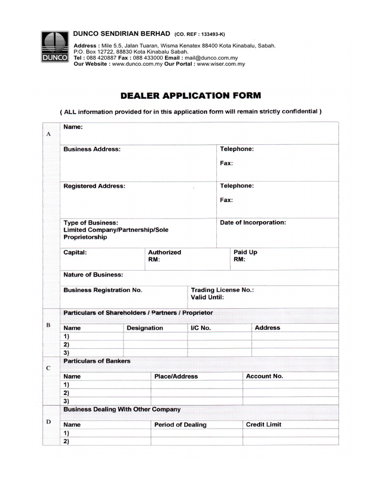 Dealer Application Form Template