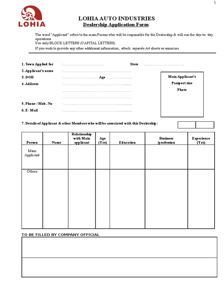 LOHIA Dealer Application Form PDF Motorcycle Business