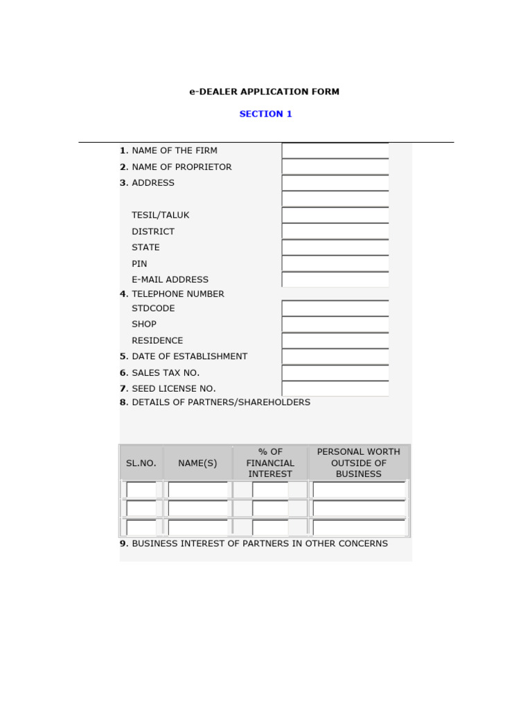 E Dealer Application Form PDF Interest Personal Finance