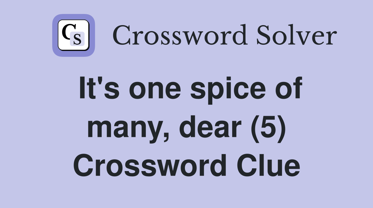 It s one spice of many dear (5) Crossword Clue Answers Crossword