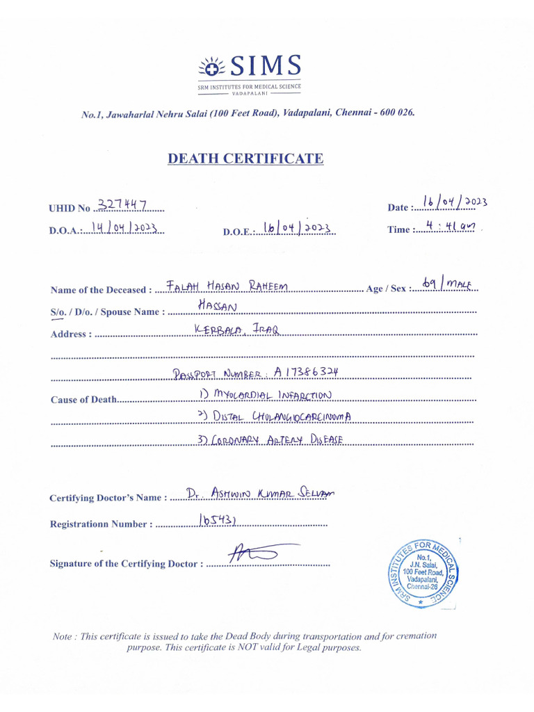 Death certificate PDF