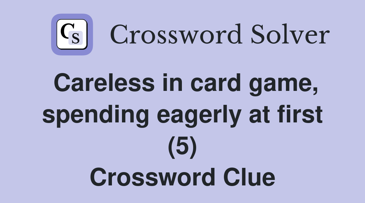 Careless in card game spending eagerly at first (5) Crossword Clue