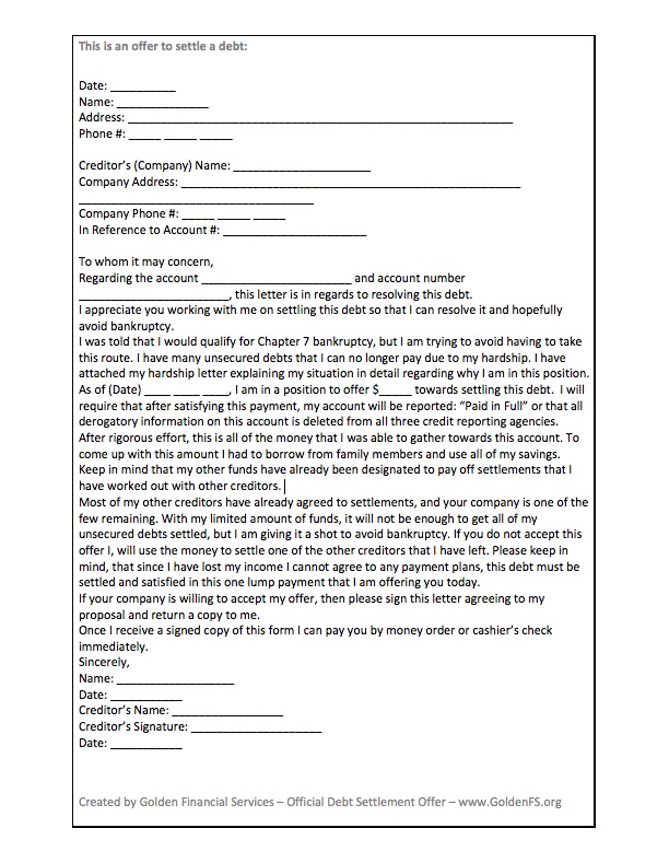 Debt Settlement Letter Template