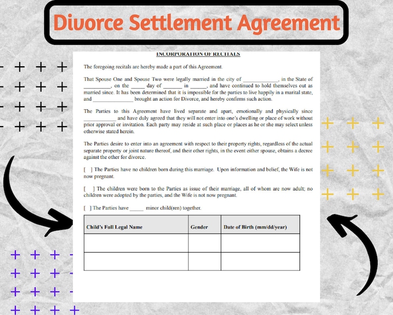 Divorce Settlement Agreement Divorce Settlement Form Marital