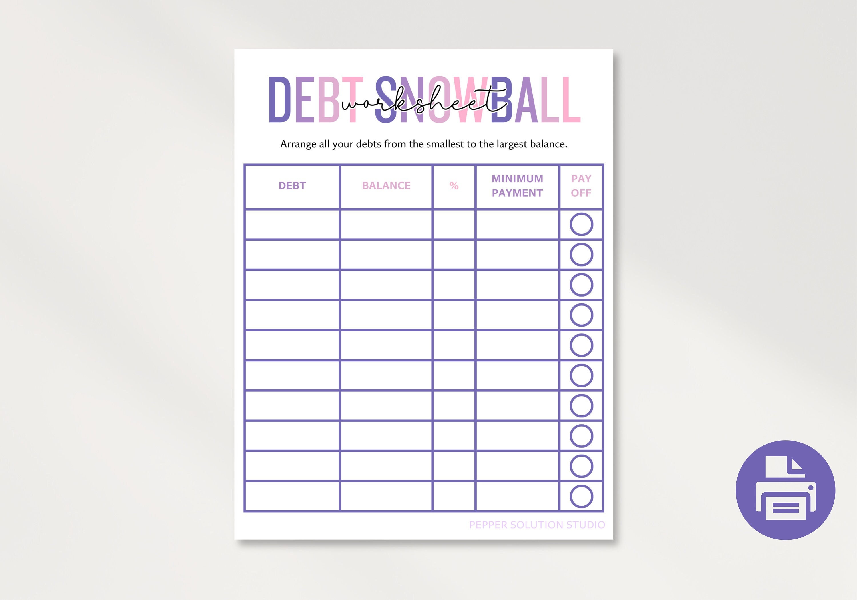 Debt Snowball Printable Sheet: Dave Ramsey Inspired Debt Snowball Sheet