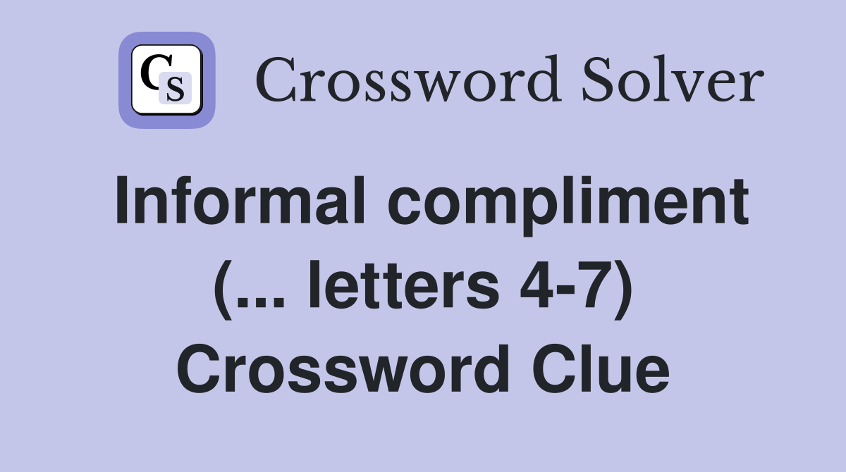 Informal compliment ( letters 4 7) Crossword Clue Answers
