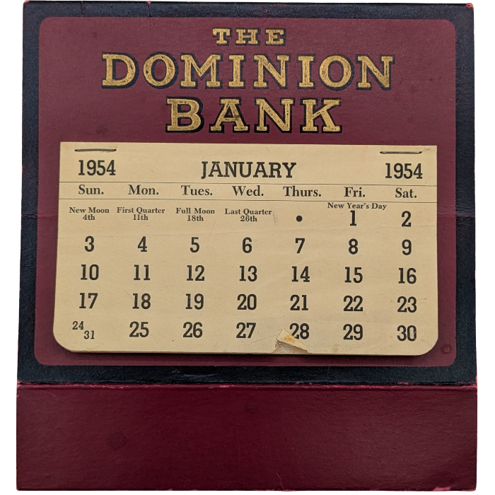 1954 Dominion Bank Desk Calendar Parry s Vintage