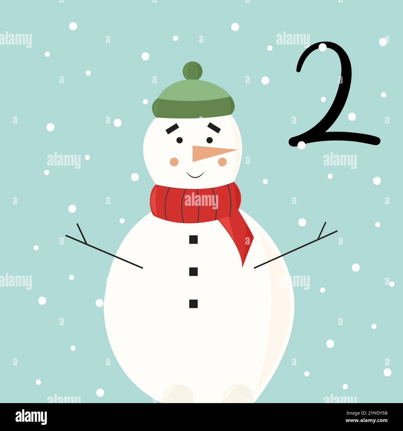 Christmas advent calendar with snowman and snowfall 2nd of december