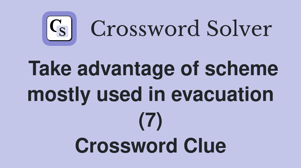 Take advantage of scheme mostly used in evacuation (7) Crossword Clue