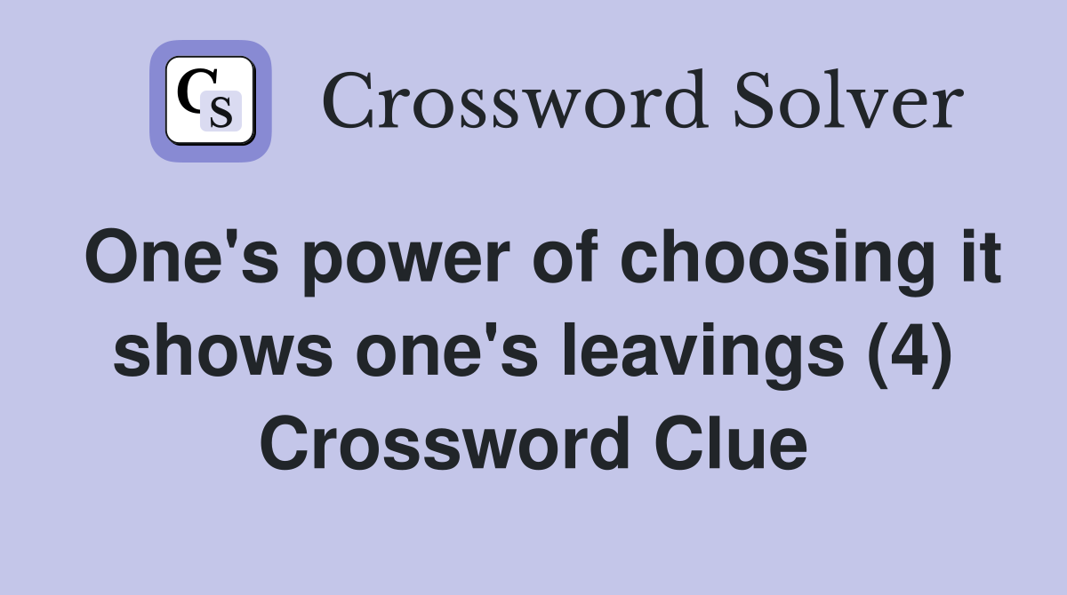 One s power of choosing it shows one s leavings (4) Crossword Clue