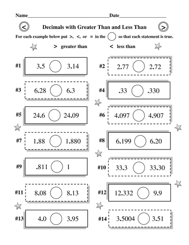 Decimal Comparison Worksheet: Greater Than Less Than