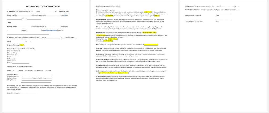 Deck Building Contract Agreement Template Editable Doc PDF Etsy