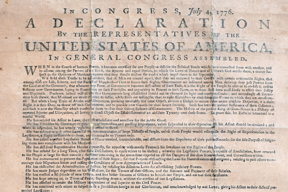 Rare and valuable copy of American Declaration of Independence found