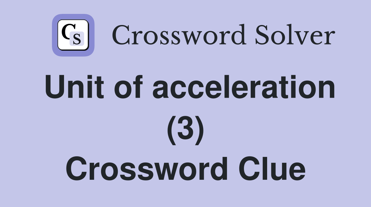 Unit of acceleration (3) Crossword Clue Answers Crossword Solver