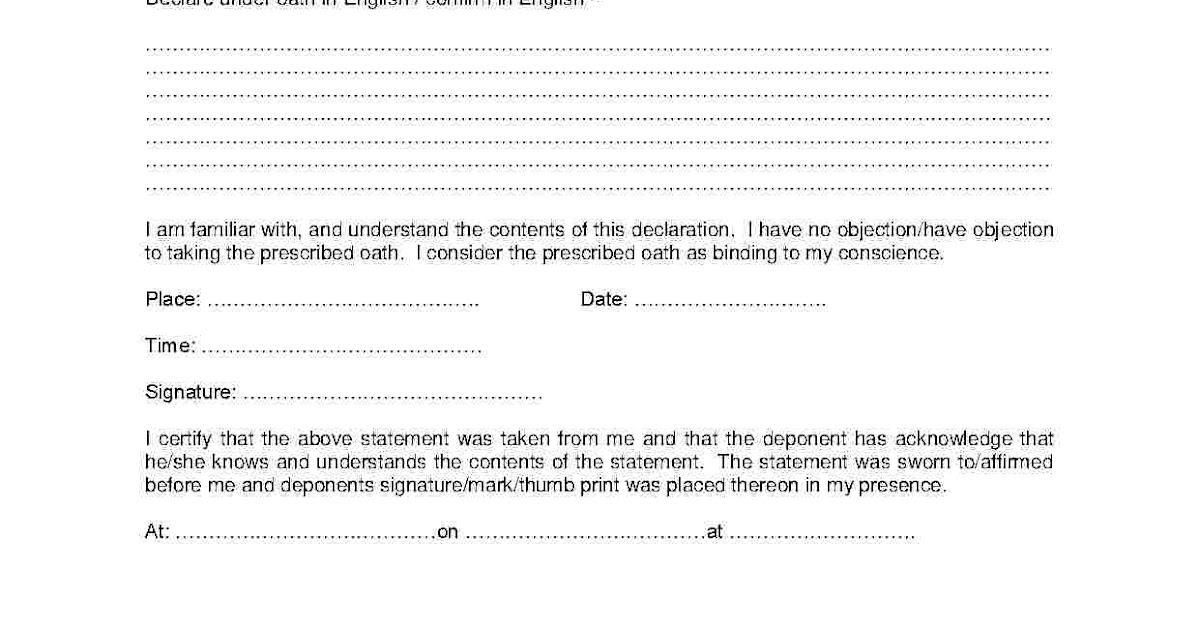 Fillable Online I the undersigned Hereby declare under oath as