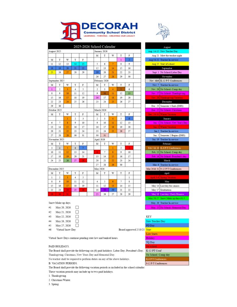 Decorah Community School IA Calendar 25 26 Revised pdf EduCounty