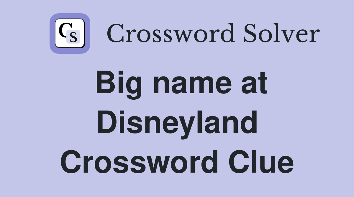 Big name at Disneyland Crossword Clue Answers Crossword Solver