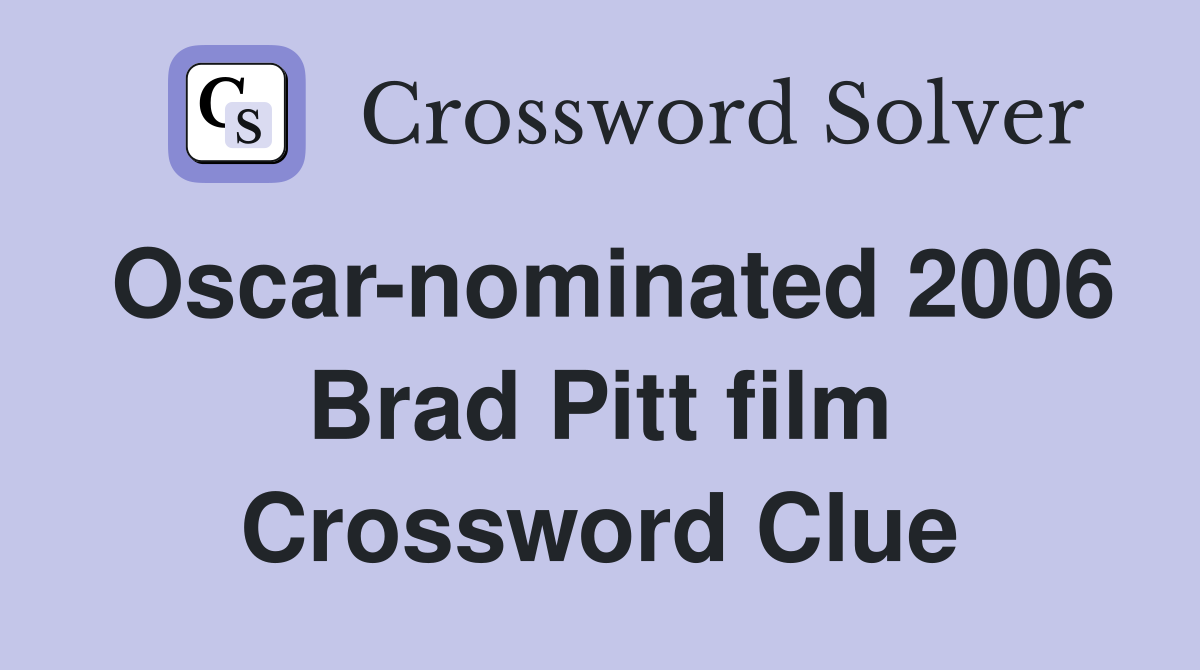 Oscar nominated 2006 Brad Pitt film Crossword Clue Answers