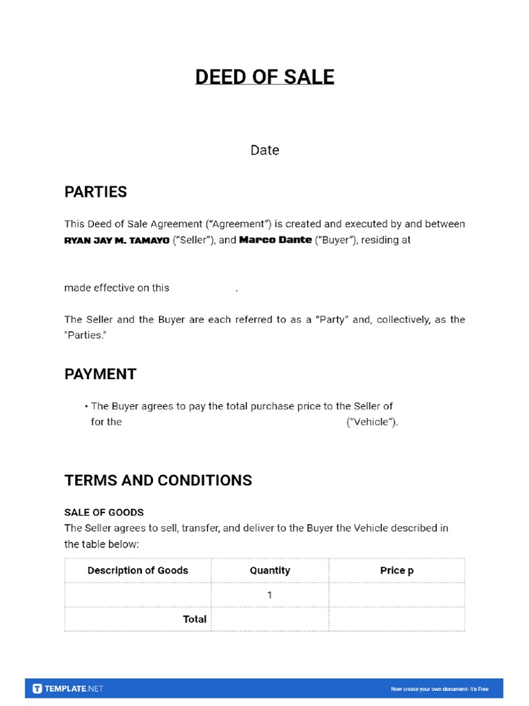 Free Sample Deed of Sale Template to Edit Online